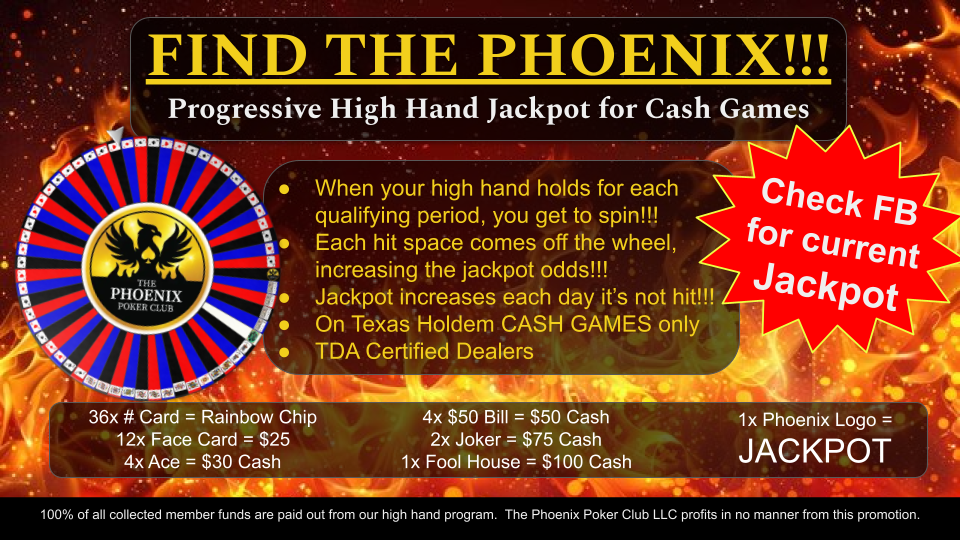 Start and end times above are displayed as this system allows and most likely do not reflect true hours. Our cash games typically form as players are eliminated from our tournaments, and there is NEVER a lack of action!!! Please never hesitate to text or call the club to check on the status of available seats and game availability at (330) 333-6767.