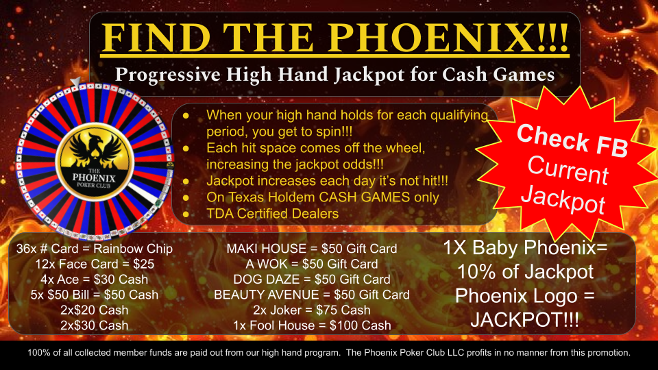 CASH GAMES with Progressive HIGH HAND JACKPOT!!!
