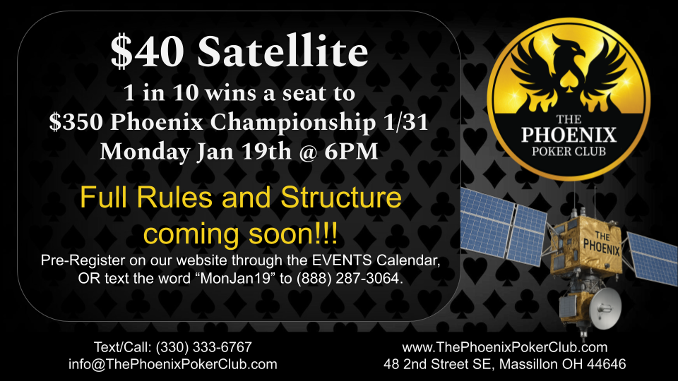 • ALL DECISIONS REGARDING THE INTERPRETATION OF RULES, ELIGIBILITY, ETC. FOR THIS TOURNAMENT LIE SOLELY WITH THE PHOENIX POKER CLUB LLC AND TOURNAMENT STAFF WHOSE DECISIONS ARE FINAL. *NOTE: MANAGEMENT RESERVES THE RIGHT TO ALTER, CHANGE, OR CANCEL THIS TOURNAMENT. MANAGEMENT WILL NOT BE HELD RESPONSIBLE IN THE EVENT OF TYPOGRAPHICAL ERRORS OR MISINFORMATION ON THE WEBSITE OR PRINTED MATERIAL PERTAINING TO THIS EVENT.